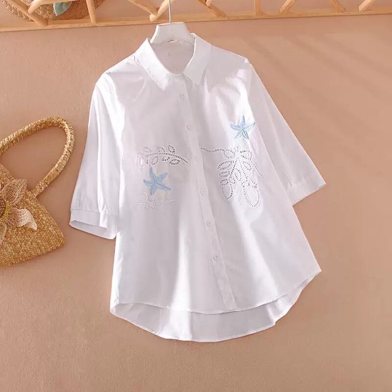 MQ0015 スターフィッシュ刺繍コットンシャツ(全2色)