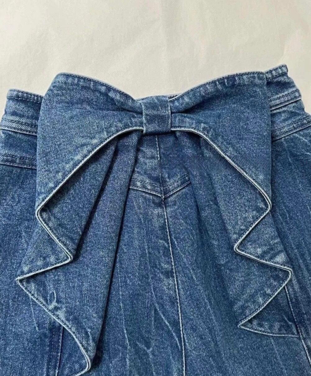 MQ0033 バックリボン ハイウエストワイドデニムパンツ