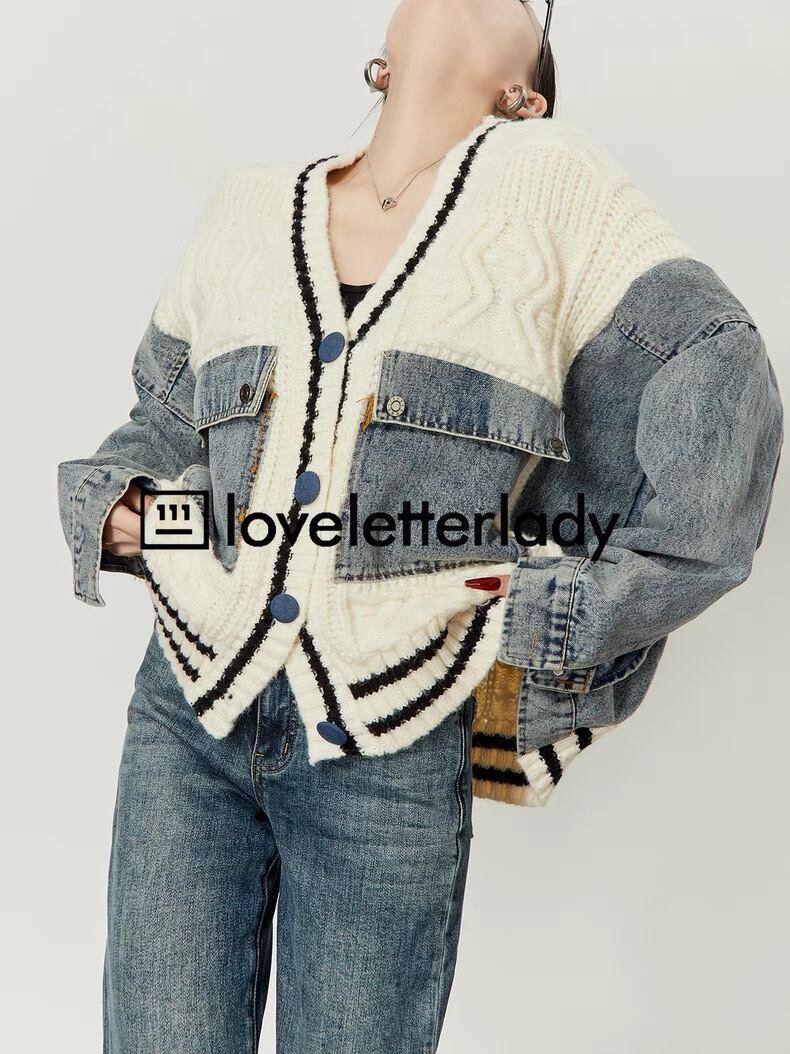 MQ0002【LOVE LETTER LADY】ニット×デニム オーバーサイズカーディガン