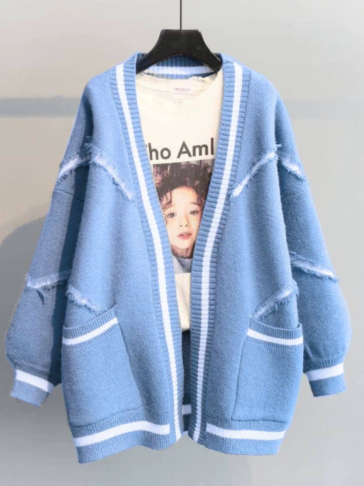 商品名:MQ2015 オーバーサイズバイカラーニットカーディガン(全3色)