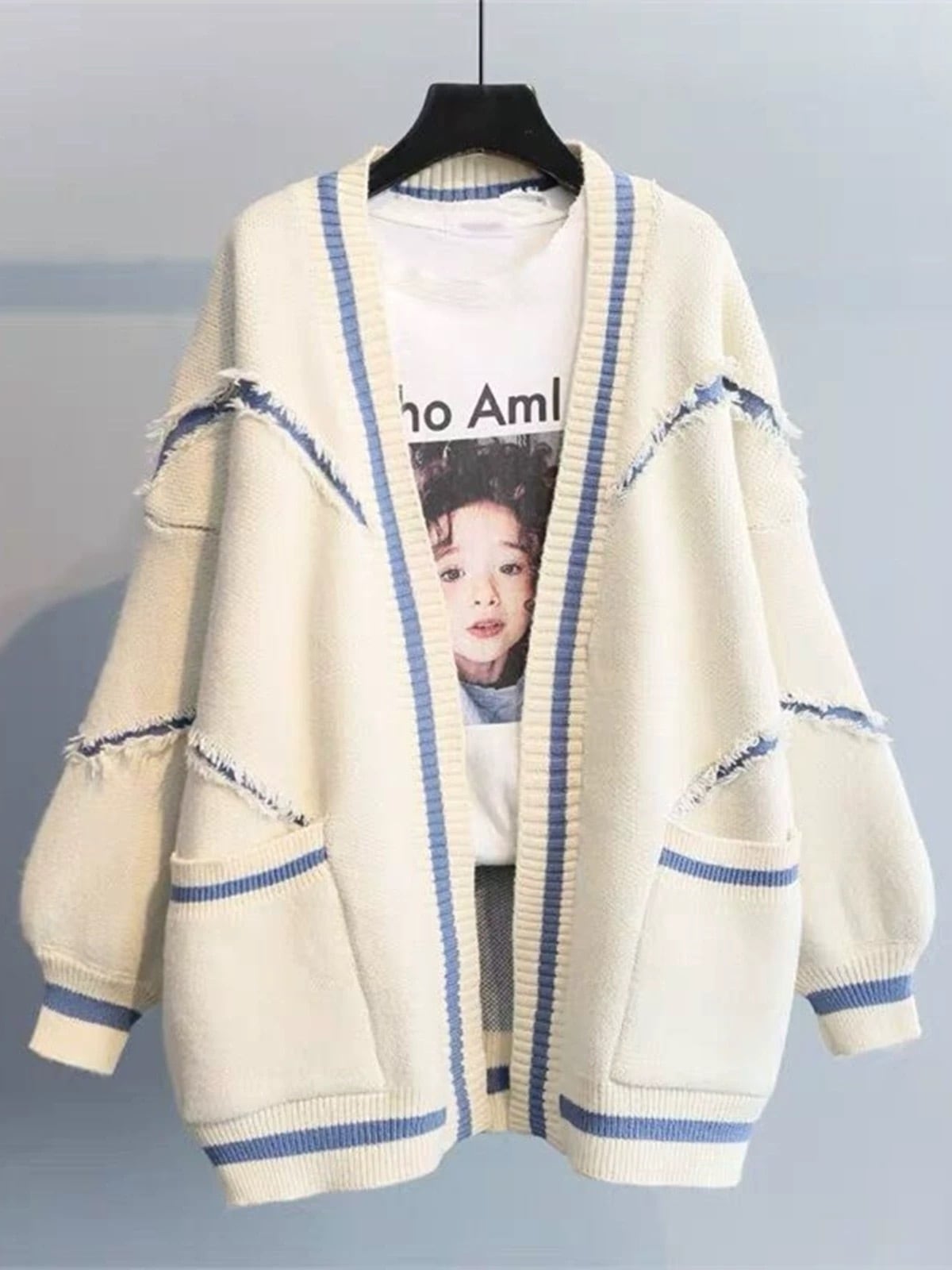 • フリンジ風ディテール:袖や身頃の切り替え部分にほつれ加工を施し、こなれたヴィンテージ感を演出。