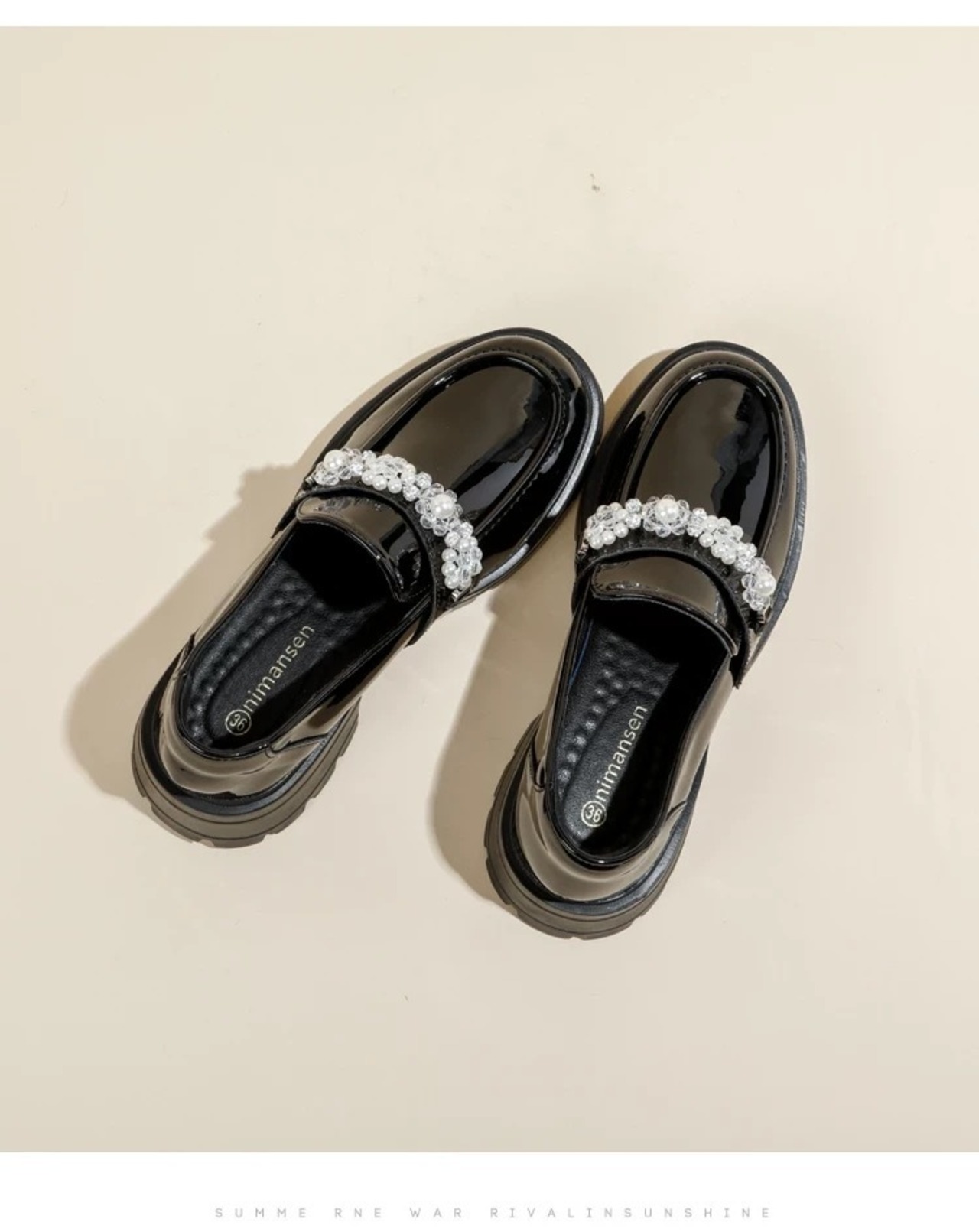 パールビジュー付き ローファー
