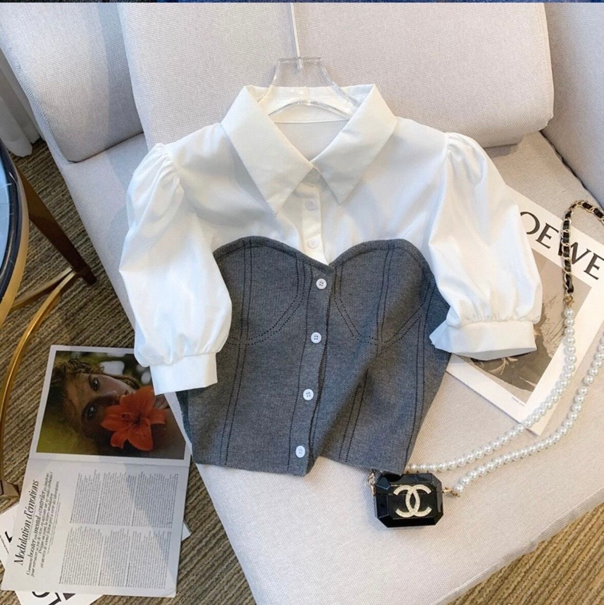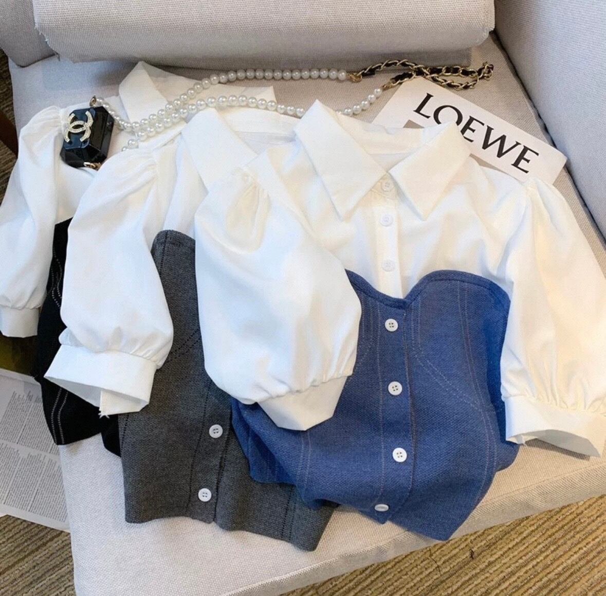 • シャツ×ビスチェのドッキングデザイン
