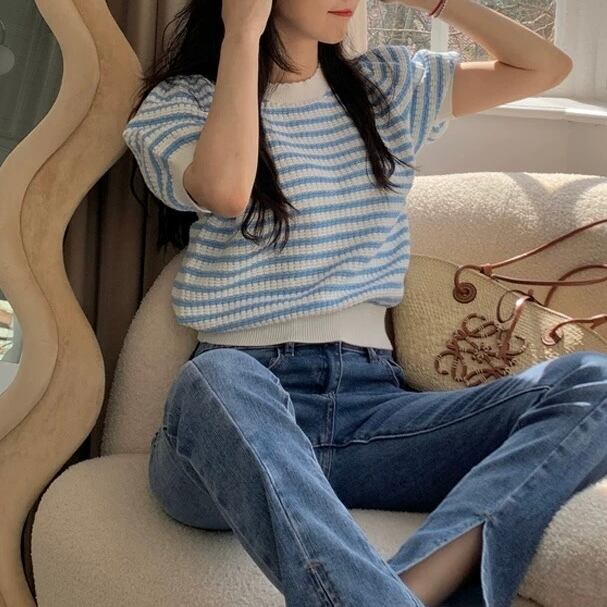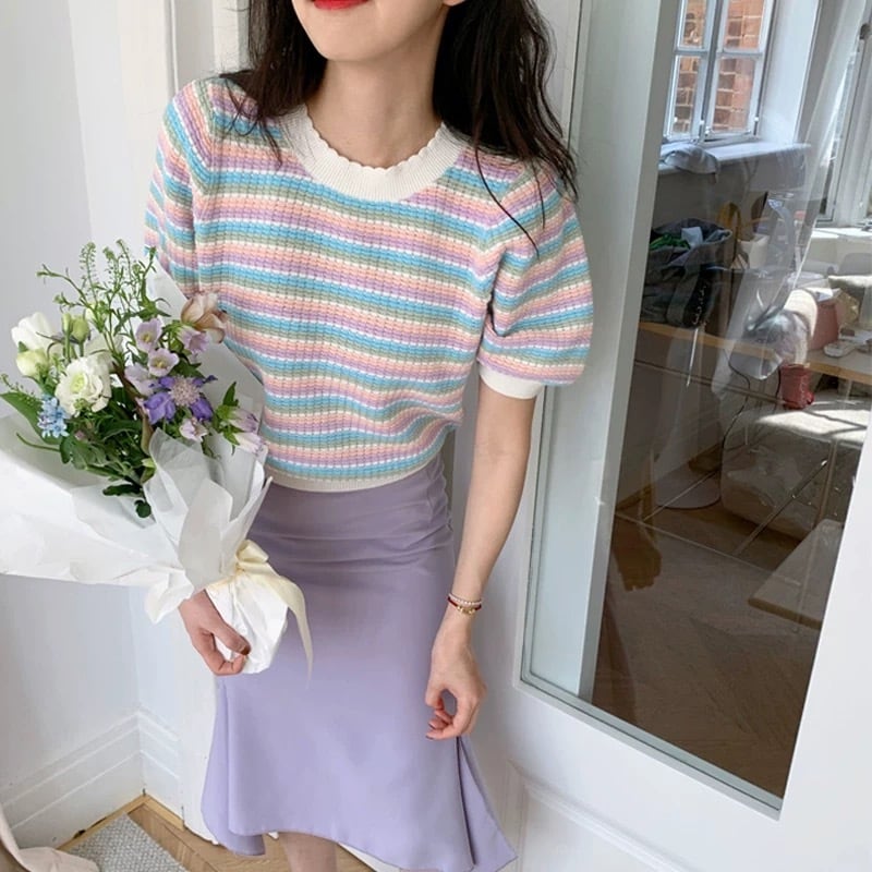商品名:MQ0003 カラフルボーダーフレンチスリーブニット(全2色)