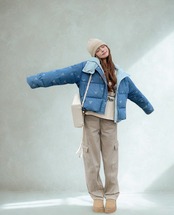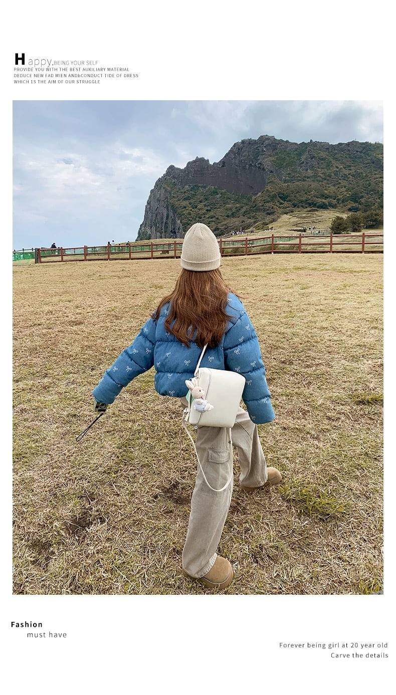 このデニム×リボン ショートダウンで、あなたのスタイルに温かさとかわいらしさをプラスし、毎日をもっと楽しんでください!