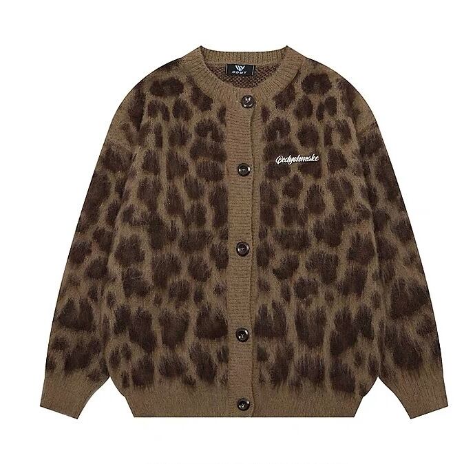 MQ5001【Men's】レオパード柄モヘアカーディガンは、トレンド感あふれるレオパード柄が魅力の洗練されたアイテムです!ブラウンとグレーの2色展開で、あなたのスタイルに合わせて選ぶことができます。軽やかで柔らかな肌触りと着心地の良いデザインは、デイリーユースはもちろん、特別なシーンにもピッタリ。M・L・XLの3サイズ展開により、ぴったりのフィット感を実現でき、多彩なコーディネートに活躍してくれること間違いなしです。