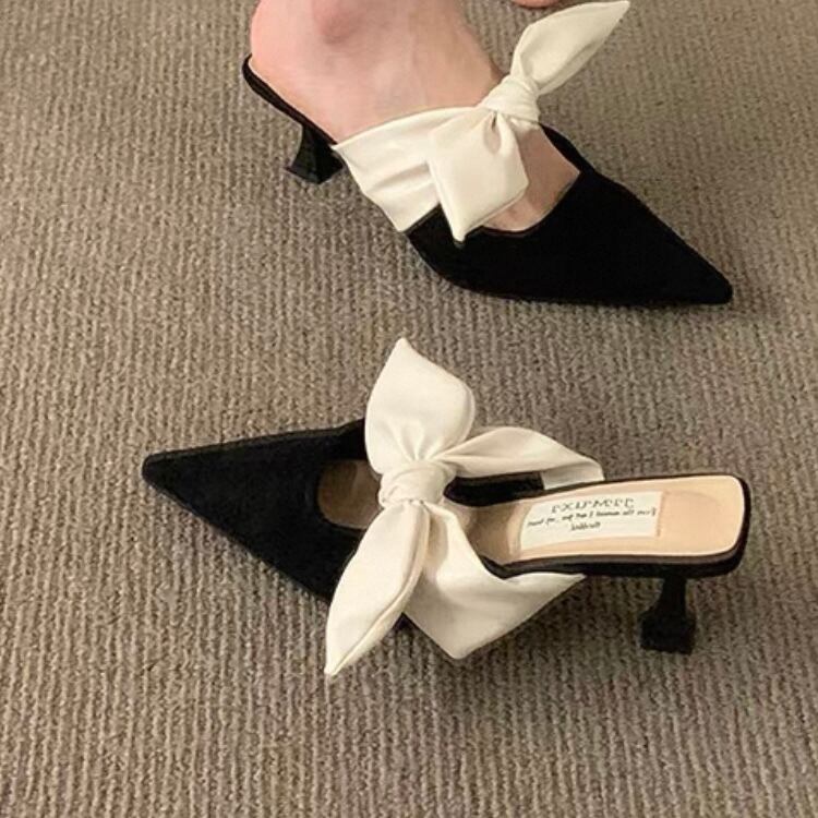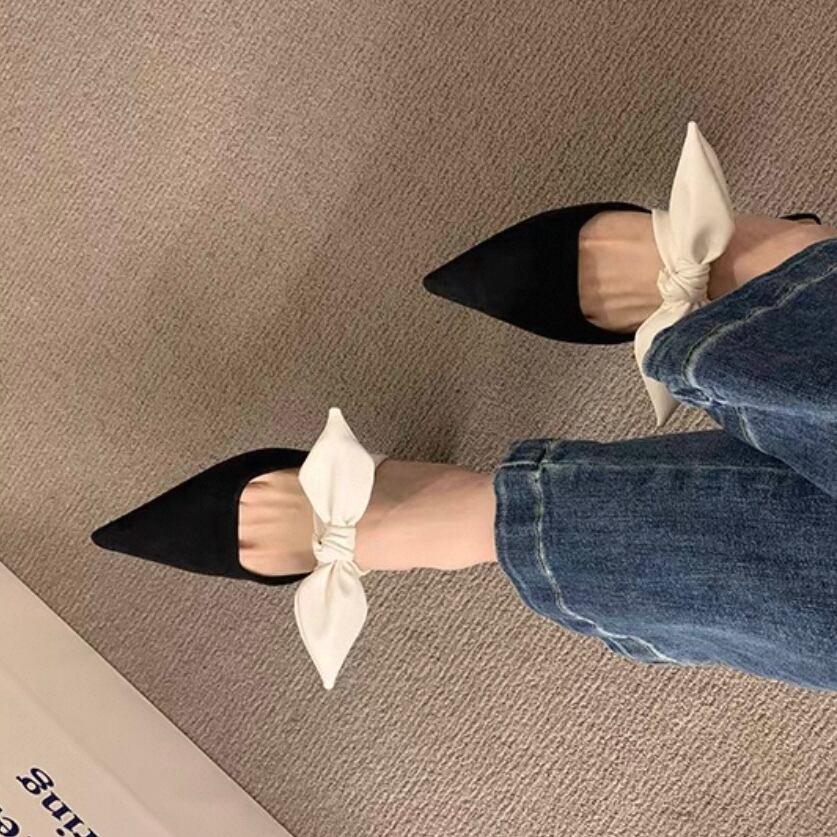 MQ0028 ポインテッドトゥリボンバックレスミュール(全2色)