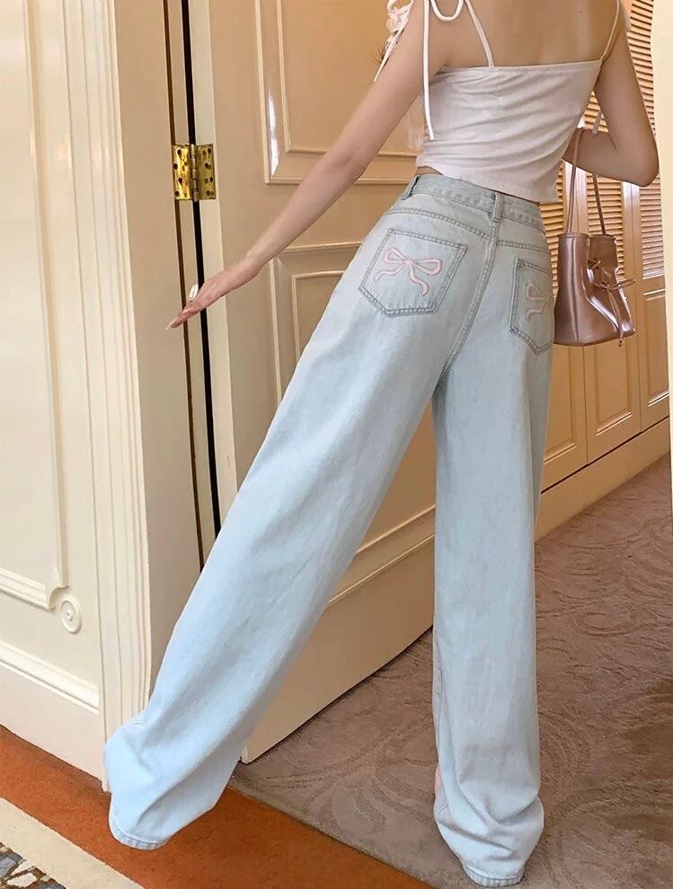 MQ バックリボン刺繍ワイドデニムパンツ(全2色)